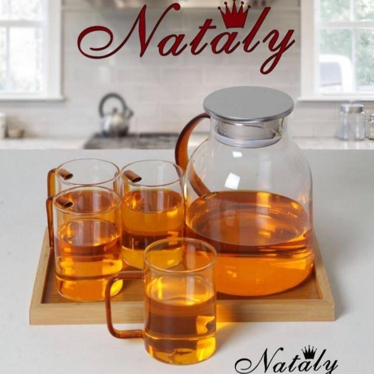 پارچ و ليوان فانتزي شامل يك پارچ ، 4 عدد ليوان ، 1 سيني بامبو وارداتي