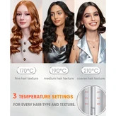 دستگاه فر کننده مو جادویی شیگلم دارای سه دمای مختلف (170، 190 و 210 درجه سانتیگراد) است که به شما این امکان را میدهد تا با توجه به نوع موی خود، دما را تنظیم کنید. این قابلیت باعث میشود که هر فرد بتواند بهترین نتیجه را با توجه به نوع و ضخامت موی خود بگیرد.